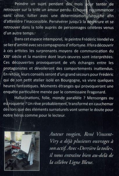 Peindre pendant des mois pour tenter de retrouver sur la toile un bonheur perdu. Lutter avec une détermination farouche afin d'atteindre l'inaccessible. Echouer, recommencer sans cesse, jusqu'à la déchirure. Pénétrer la toile et se réveiller auprès de cinq peintres illustres venus d'un autre temps. Dans cet espace intemporel, le peintre Fred Vendel va se lier d'amitié avec les instigateurs de l'impressionisme, du cubisme et de la peinture abstraite. Après la découverte surprenante dinternet, ces artistes vont apprendre à leur plus grand étonnement de quelle manière leurs uvres sont commentées au XXIe siècle et combien elles sont cotées. En retour, leurs conseils et leur savoir seront pour Fred dun grand secours. De son petit atelier perdu au milieu de la Bourgogne en passant par Montmartre et l'Espagne, ils se permettront quelques visites cocasses dans différents musées ce qui entraînera une enquête sévère menée par le commissaire Fragonard.